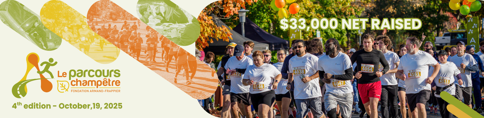 The Parcours Champêtre raises funds for undergraduate internships, for the Armand-Frappier Santé Biotechnologie Research Centre’s Apprentis chercheurs program, for the Congrès Armand-Frappier and for the Armand-Frappier Foundation’s ongoing mission.