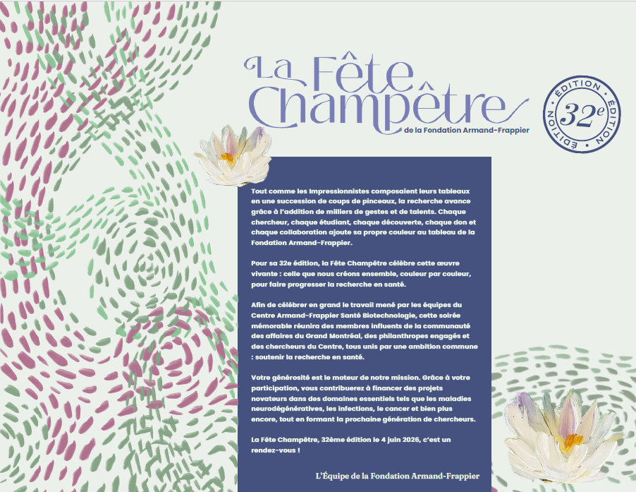 Grâce à vos dons et votre participation à La Fête Champêtre, nous pouvons soutenir la recherche au Centre Armand-Frappier Santé Biotechnologie: